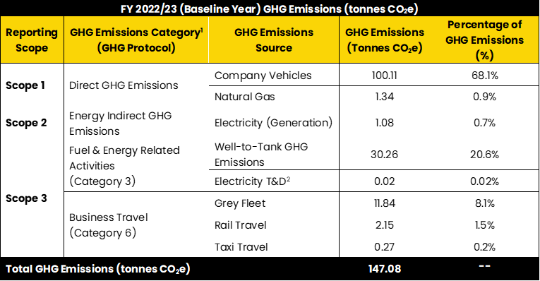 Supporting energy consumption and fuel data used to calculate GHG emissions covers the whole of the 2022/23 FY reporting year, which runs from 1st April 2022 – 31st March 2023.